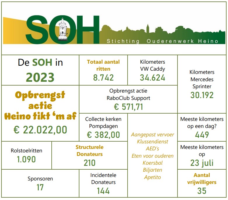 Trots heeft de SOH haar nieuwe elektrische rolstoelauto gepresenteerd. De gloednieuwe rolstoelauto is officieel in gebruik genomen. Met deze aanwinst gaat de SOH haar vervoersactiviteiten duurzamer aanbieden. De aanschaf van deze volledig elektrische rolstoelauto is mede mogelijk gemaakt door gulle bijdragen bij Heino tikt ‘m af tijdens de afgelopen Pompdagen, alle begunstigers en donateurs van de SOH en een genereuze ondersteuning van de Rabo coöperatieve Duurzaamheidsbijdrage.