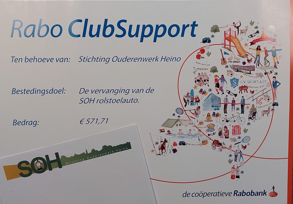 Stichting Ouderenwerk Heino doet mee met de Rabobank Club Support.